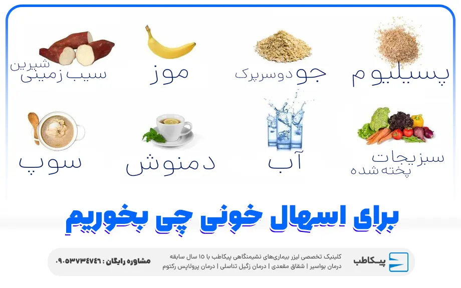 - رعایت رژیم غذایی مناسب: توصیه می شود از غذاهای سبک و قابل هضم مانند برنج سفید، موز و سیب زمینی پخته استفاده شود. این مواد غذایی به تنظیم حرکات روده و کاهش علائم اسهال کمک می کنند.